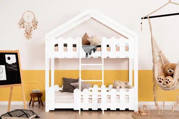 Κουκέτα Παιδική Διπλή Σπιτάκι Kaiko σε Λευκό Χρώμα Ξύλου 90×190cm Adeko
