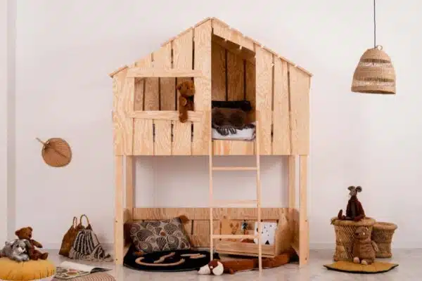 Κουκέτα Παιδική Διπλή Σπιτάκι Kaiko σε Φυσικό Ξύλο 90×190cm Adeko