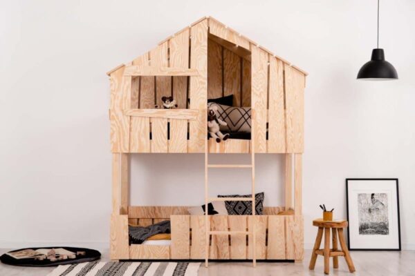 Κουκέτα Παιδική Διπλή Σπιτάκι Mila DMP σε Φυσικό Ξύλο 80×180cm Adeko (Δώρο 10% Έκπτωση στα Στρώματα)