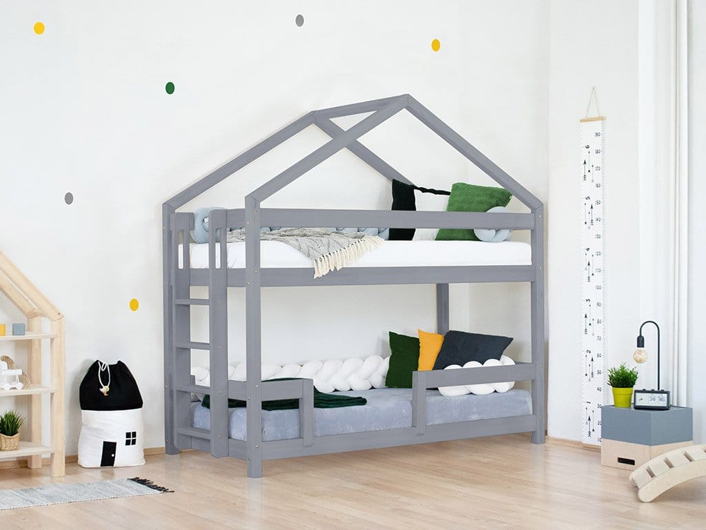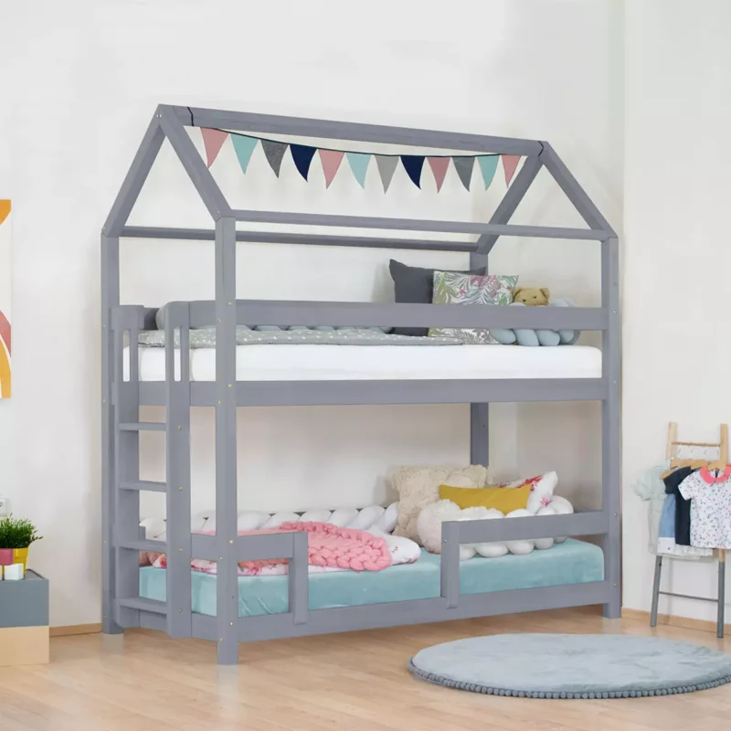 Κουκέτα Σπιτάκι Monty από μασίφ ξύλο Grey 90×200cm