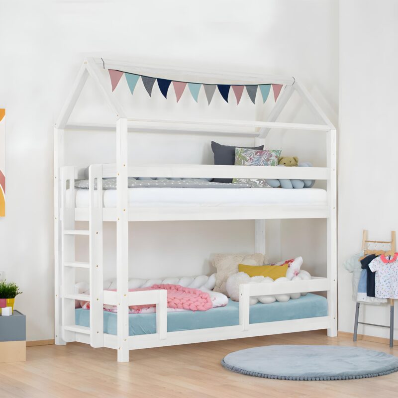 Κουκέτα Σπιτάκι Kili από μασίφ ξύλο White 90×200cm
