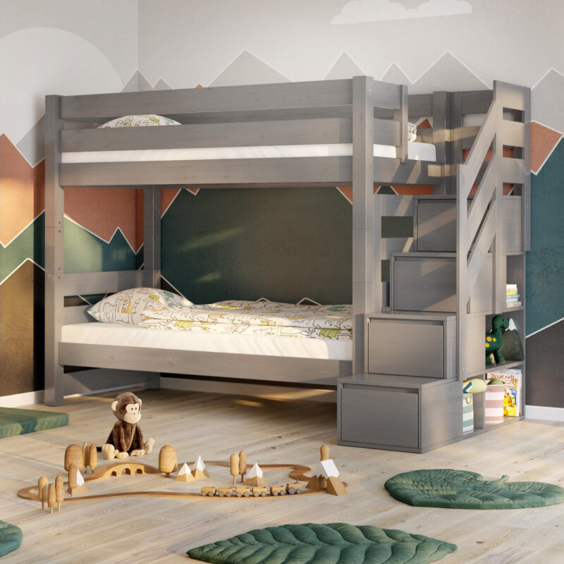 Κουκέτα Oliver Stairs με Σκαλοπάτια Και Αποθηκευτικό Χώρο από μασίφ ξύλο Grey 90×200cm