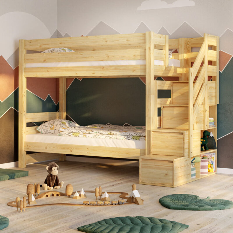 Κουκέτα Oliver Stairs με Σκαλοπάτια Και Αποθηκευτικό Χώρο από μασίφ ξύλο Natural 90×200cm