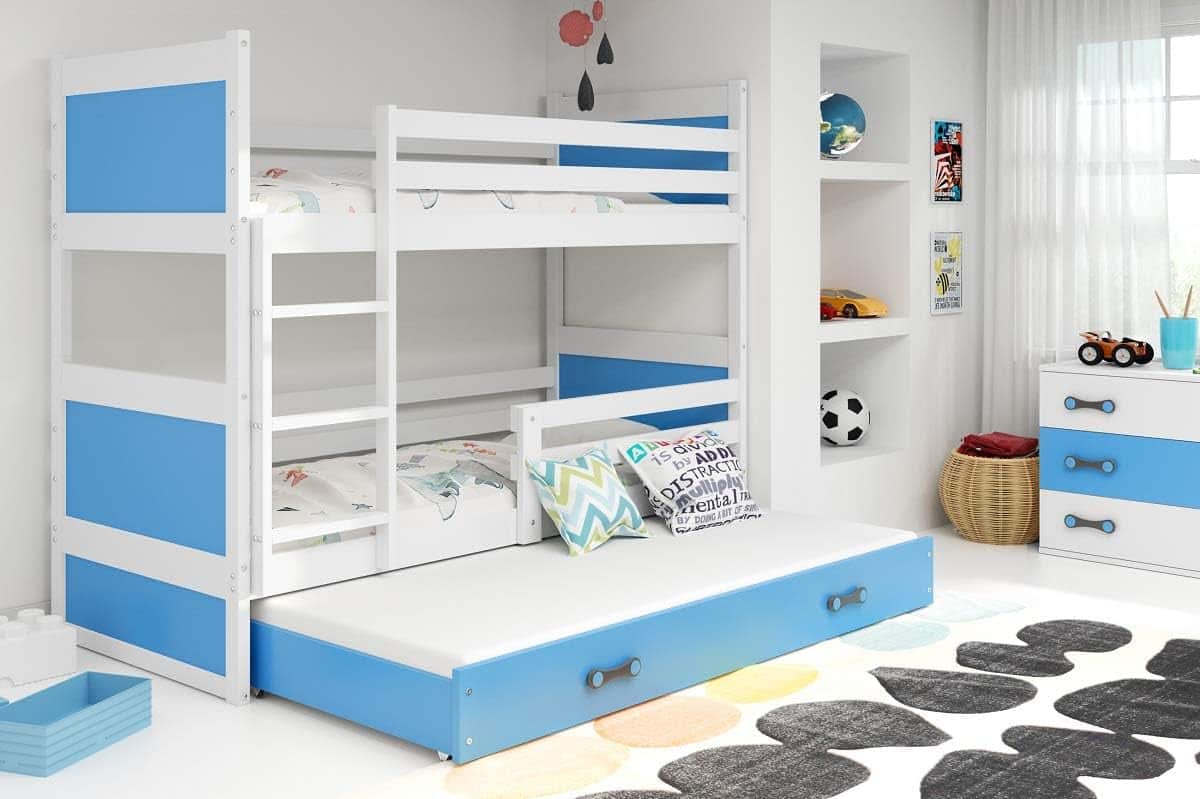 Κουκέτα Riccon με 3o Κρεβάτι από μασίφ ξύλο White & Blue 90×200cm (Δώρο τα 3 Στρώματα)