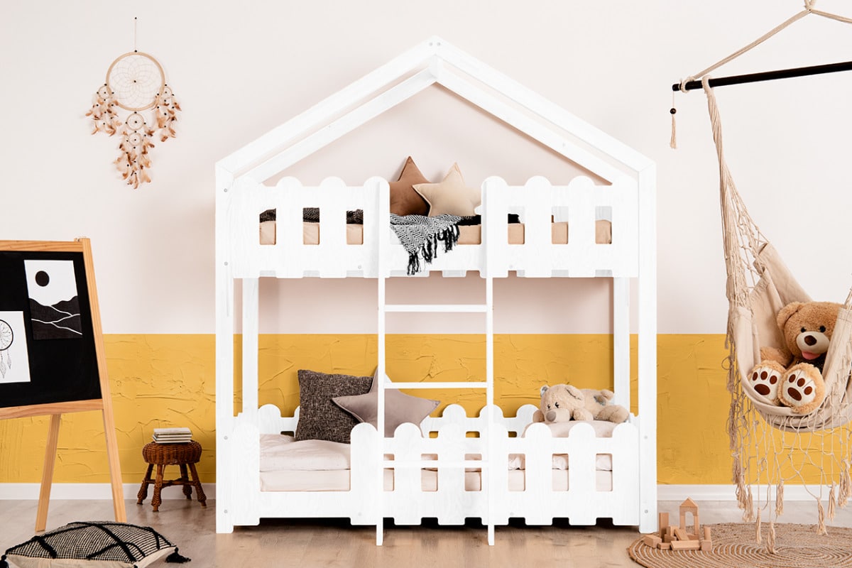 Κουκέτα Παιδική Διπλή Σπιτάκι Kaiko σε Λευκό Χρώμα Ξύλου 90×200cm Adeko