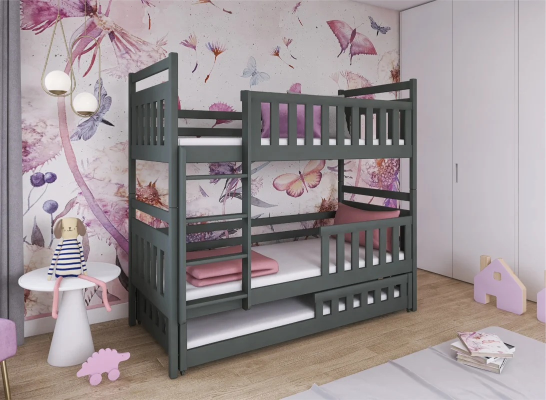 Κουκέτα Oliwia με Συρόμενο από μασίφ ξύλο Graphite 90×200cm (Δώρο 10% Έκπτωση στα Στρώματα)
