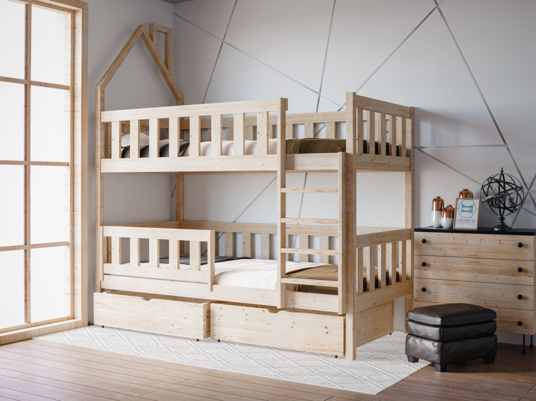 Κουκέτα Antek με Συρτάρια από μασίφ ξύλο Natural 90×200cm (Δώρο 10% Έκπτωση στα Στρώματα)