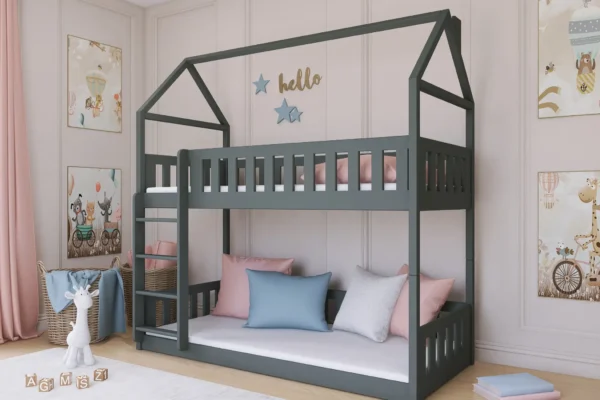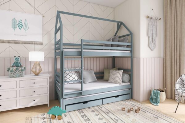 Κουκέτα Σπιτάκι Gaja με 2 Συρτάρια Αποθήκευσης από μασίφ ξύλο Grey 90×200cm (Δώρο 10% Έκπτωση στα Στρώματα)