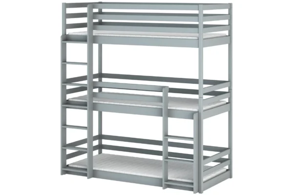 Κουκέτα Παιδική Montessori Τριώροφη Ted με κάγκελα 38cm από μασίφ ξύλο Grey 90×200cm (Δώρο 10% Έκπτωση στα Στρώματα)
