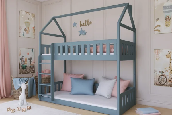 Κουκέτα Σπιτάκι Montessori Pola από μασίφ ξύλο Grey 90×200cm (Δώρο 10% Έκπτωση στα Στρώματα)