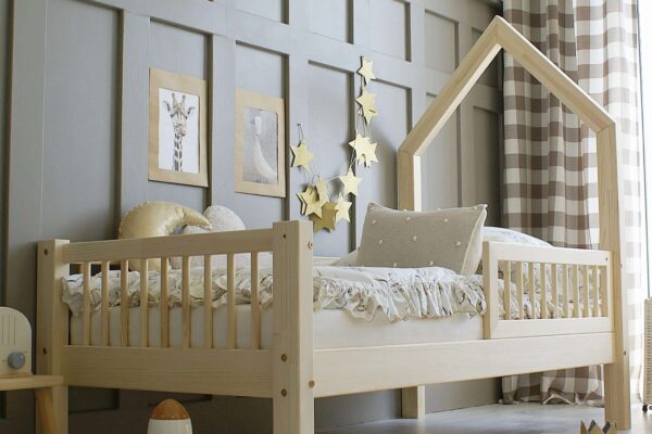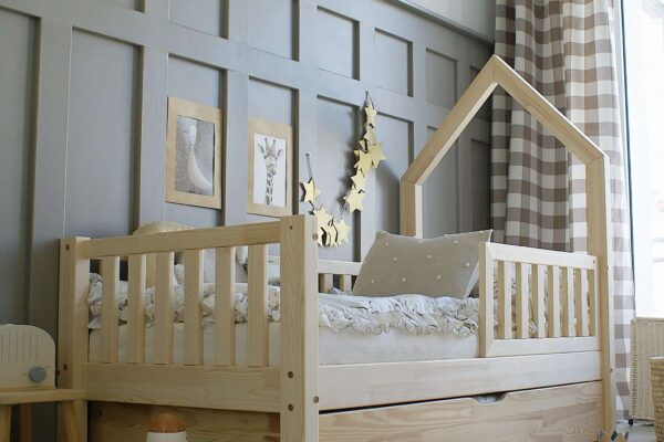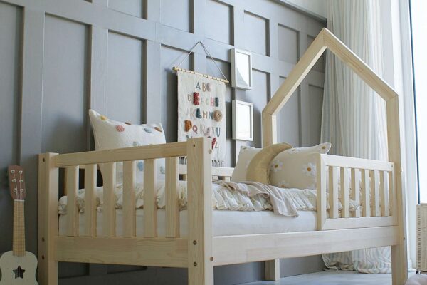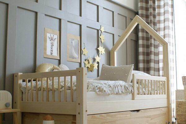 Κρεβάτι Παιδικό Mali με Κάγκελα & Καμινάδα σε Φυσικό Ξύλο 100×200cm Luletto (Δώρο 10% έκπτωση στο Στρώμα)