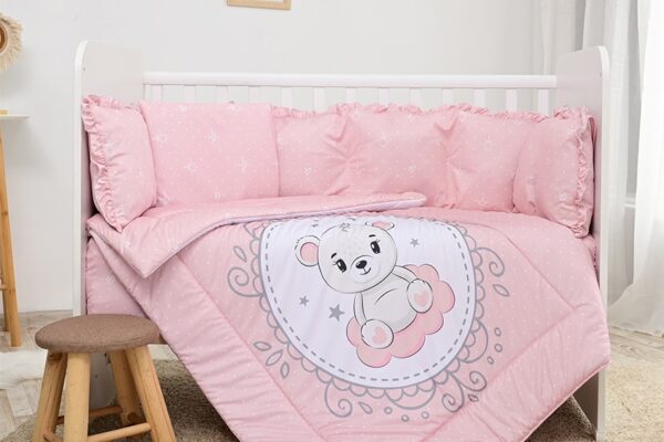 Σετ Προίκας Μωρού κούνιας 5τεμ. 70x140cm Little Bear Pink 20800085902 Lorelli