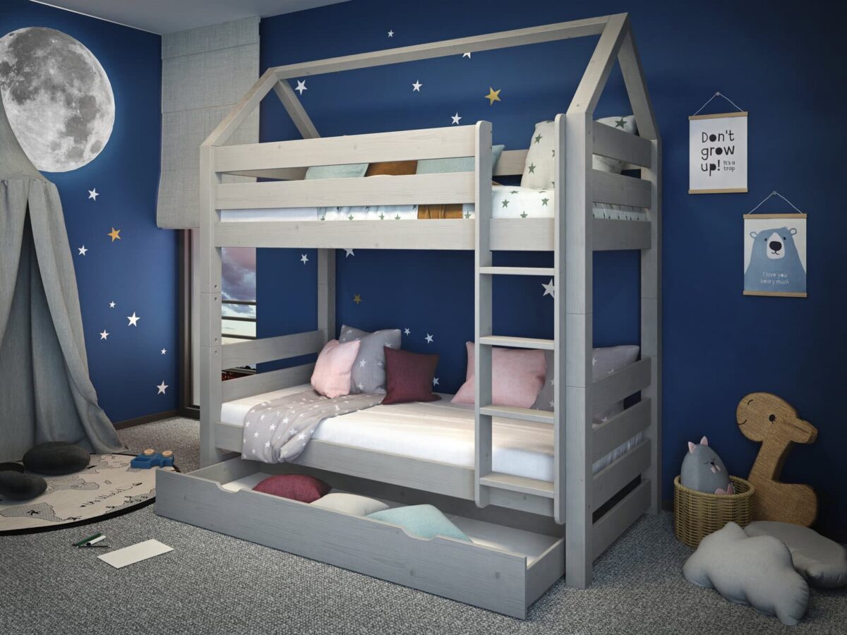 Κουκέτα Σπιτάκι Oliver Plus με Συρτάρι από μασίφ ξύλο Grey 90×200cm (Δώρο 10% Έκπτωση στα Στρώματα)