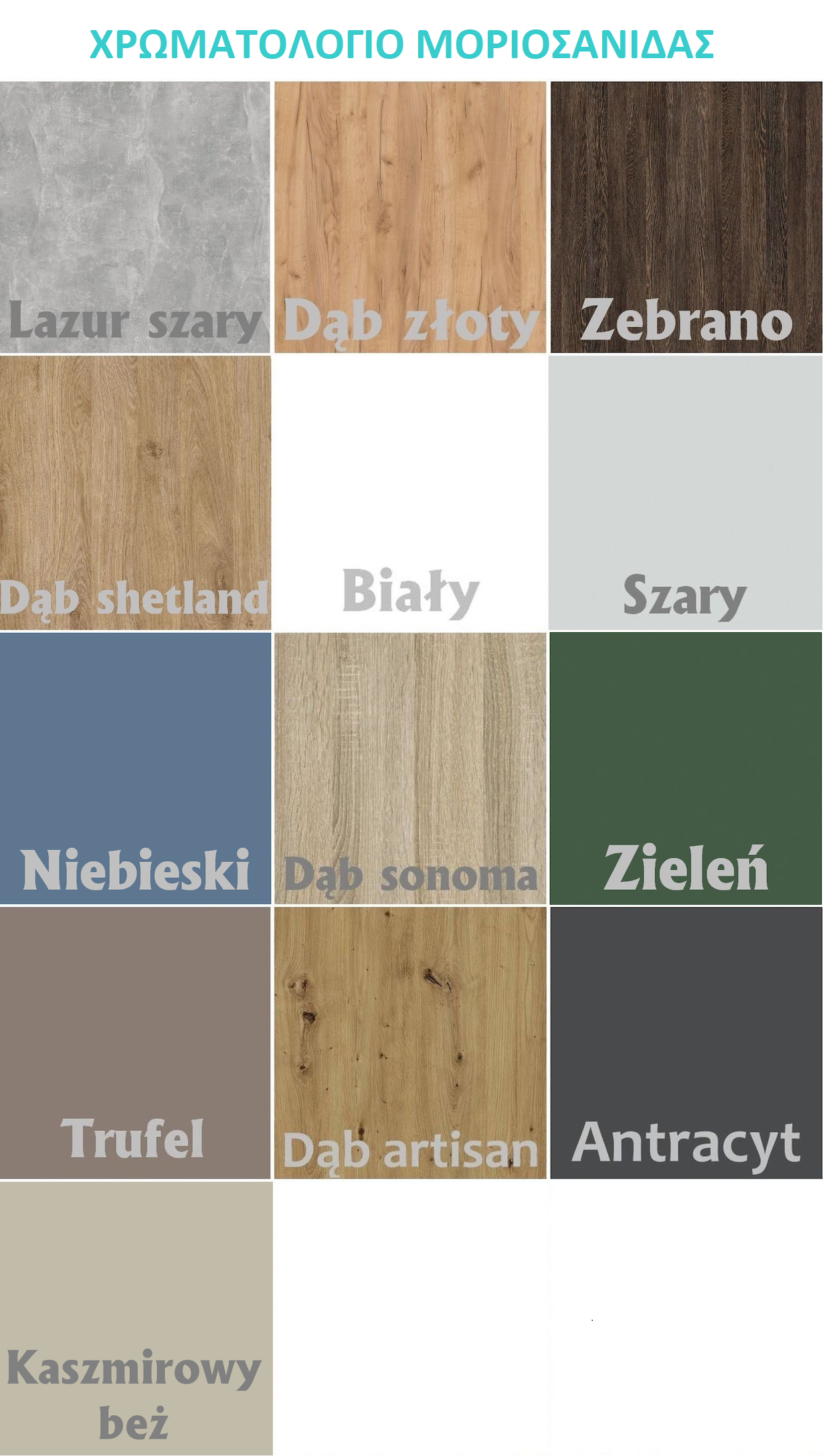 | Επιλέξτε Χρώμα Μοριοσανίδας | Anthracyt, Bialy, Dab Artisan, Dab Sonoma, Dab Zloty, Kaszmirowy Bez, Lazur Szary, Niebieski, Szary, Tab Shetland, Trufel, Zebrano, Zielen |