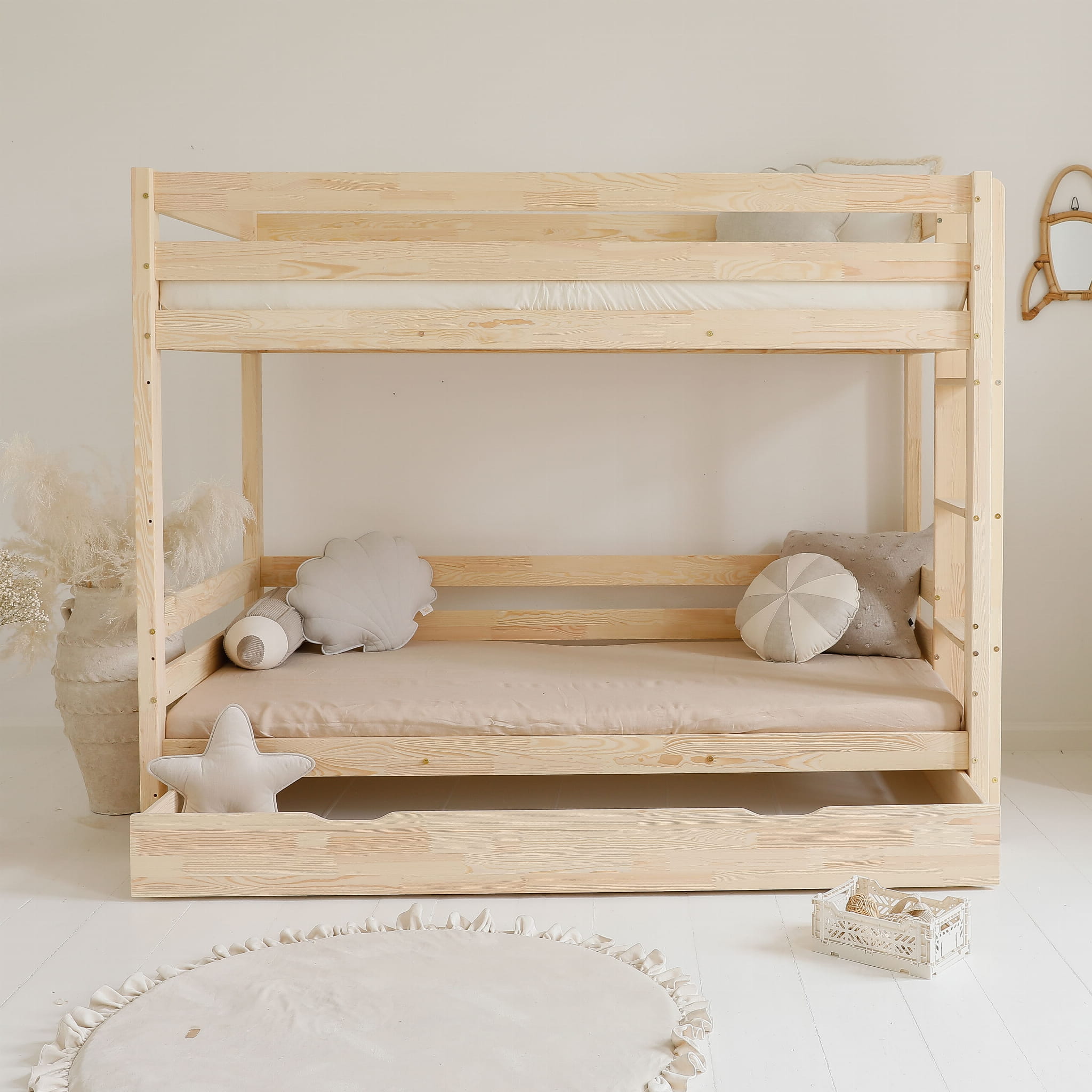 Κουκέτα Basic Plus με Οριζόντιο Κάγκελο & Συρτάρι Αποθήκευσης σε Φυσικό Ξύλο 90×200cm Luletto (Δώρο 10% έκπτωση στα Στρώματα)