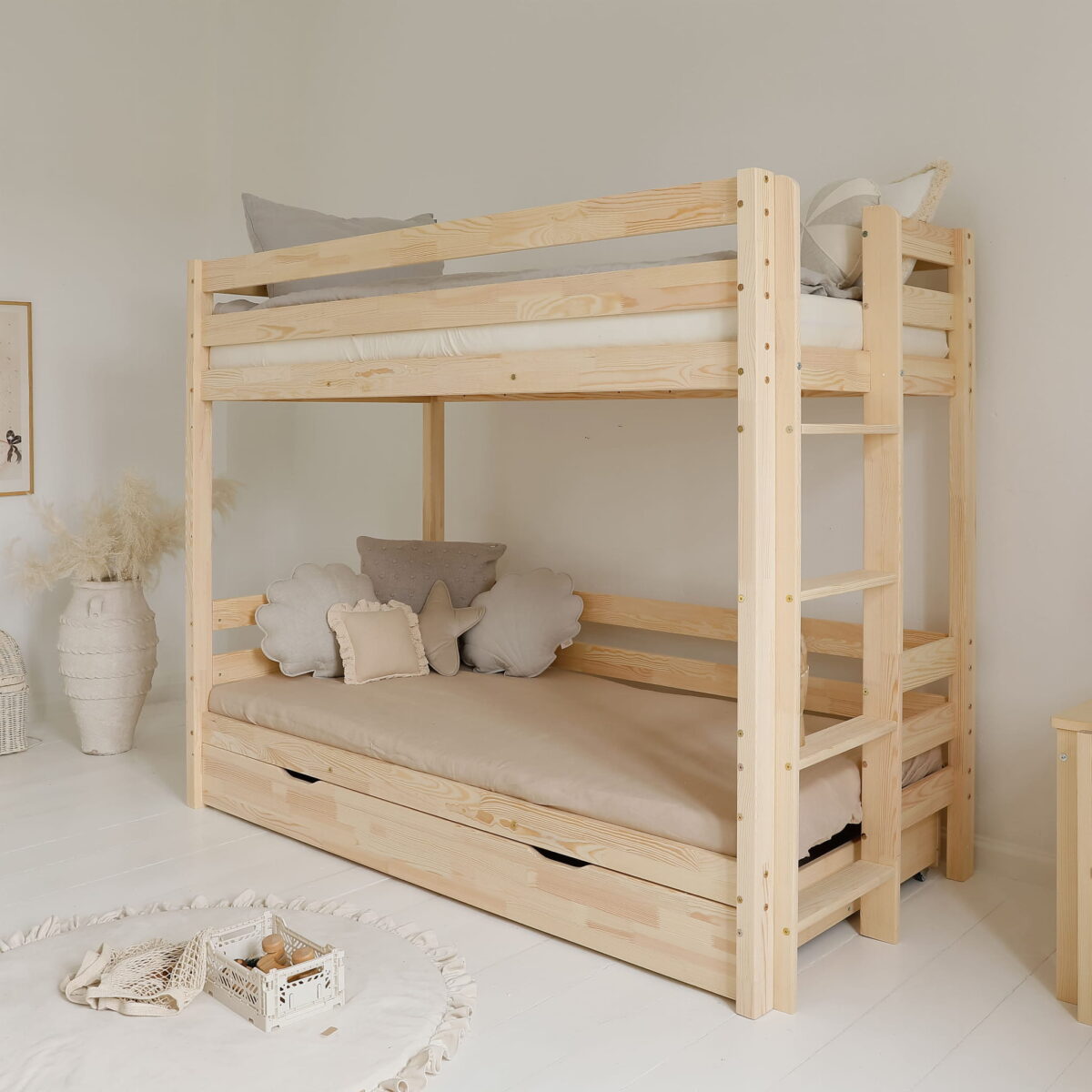 Η παιδική κουκέτα Basic Plus σκανδιναβικού στιλ από μασίφ πεύκο αποτελεί μία διαχρονική και πρακτική επιλογή για παιδικά δωμάτια. Ο λιτός σχεδιασμός σκανδιναβικού ύφους συνδυάζεται με φυσικά υλικά, δημιουργώντας ένα ζεστό και ήρεμο περιβάλλον ύπνου.