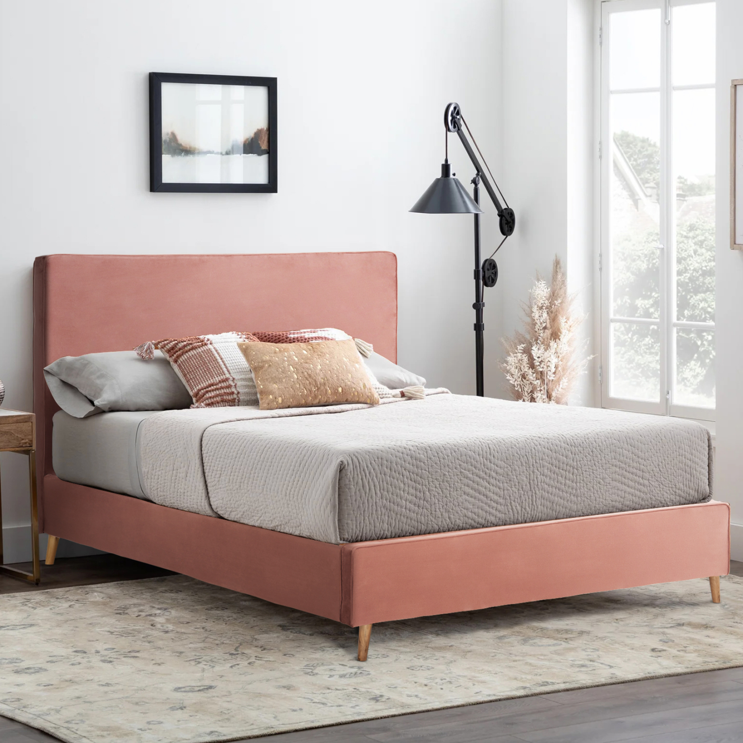 - Υλικό κατασκευής: Το κρεβάτι είναι κατασκευασμένο από ξύλο, πράγμα που του δίνει στιβαρότητα και αντοχή στον χρόνο. Η επένδυση έχει γίνει εξολοκλήρου από βελούδινο ύφασμα εξαιρετικής ποιότητας, χαρίζοντας ελκυστική όψη και μια εκλεπτυσμένη γοητεία στην διακόσμηση του υπνοδωματίου.
