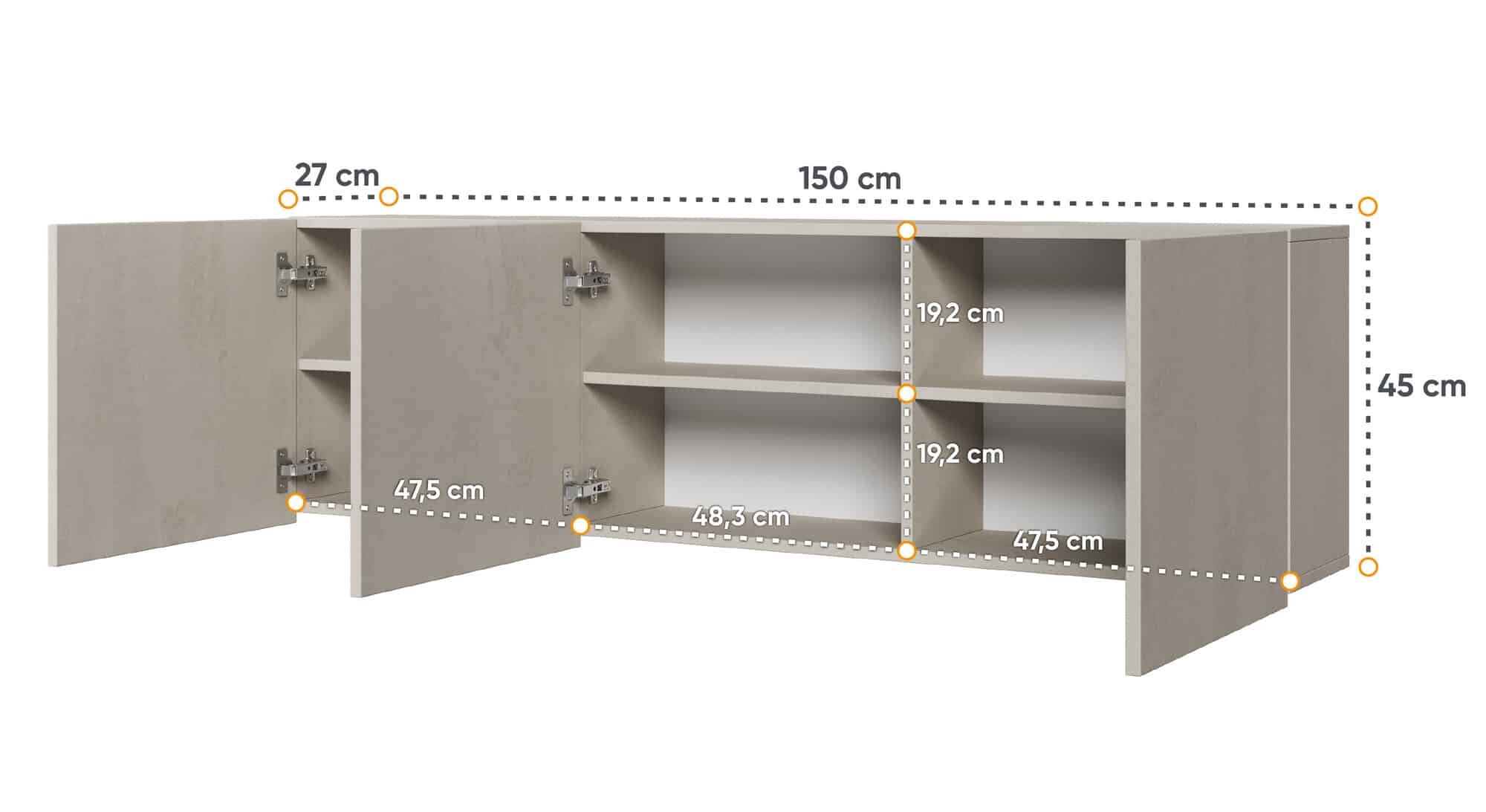 • Εξωτερική Διάσταση: Μήκος 150cm x Πλάτος 27cm x Ύψος 45cm