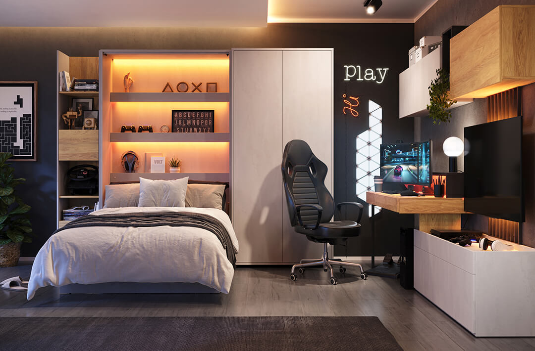 Ένα διαχρονικό κρεμαστό ντουλάπι από τη σειρά Teen Flex στο φυσικό χρώμα της καρυδιάς που σας επιτρέπει να χρησιμοποιήσετε τον χώρο στον τοίχο για να αποθηκεύσετε βιβλία, σημειωματάρια ή άλλα αντικείμενα.