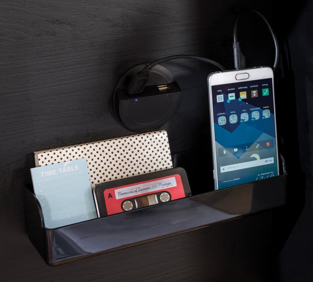 Στην πλάτη του γραφείου υπάρχει πρακτικός πίνακας σημειώσεων με μαγνήτη, καθώς και ενσωματωμένη θύρα USB για εύκολη φόρτιση κινητού τηλεφώνου ή tablet.