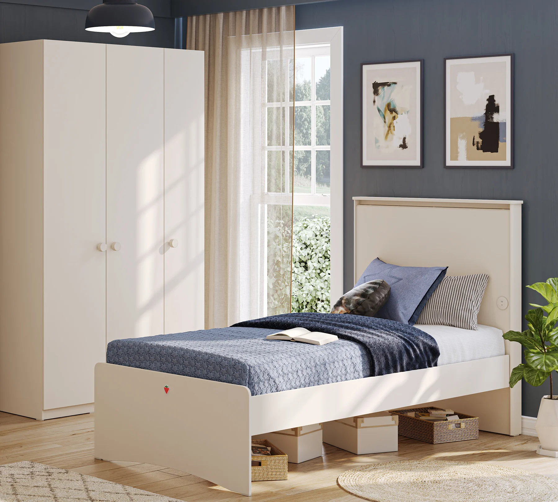 Παιδικό κρεβάτι ημίδιπλο Varia Cream VA-1304 120x200cm USB CHARGING Cilek