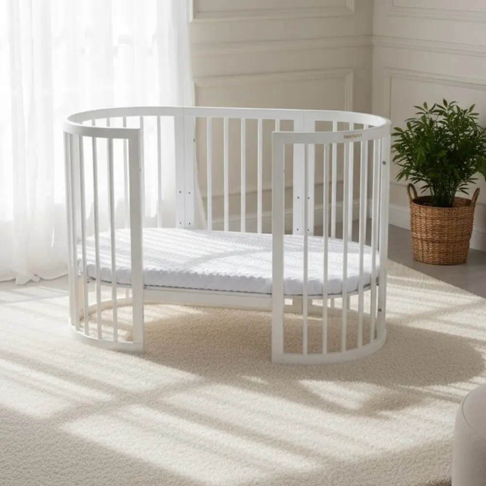 Το Πολυμορφικό Κρεβάτι Smart Bed Oval 9 in 1 μεγαλώνει μαζί με το παιδί σας και σας προσφέρει μια ολοκληρωμένη λύση ύπνου από τη γέννηση έως περίπου τα 10 έτη. Έτσι, επενδύετε σε ένα αναπτυσσόμενο κρεβάτι που προσαρμόζεται σε κάθε στάδιο ανάπτυξης.