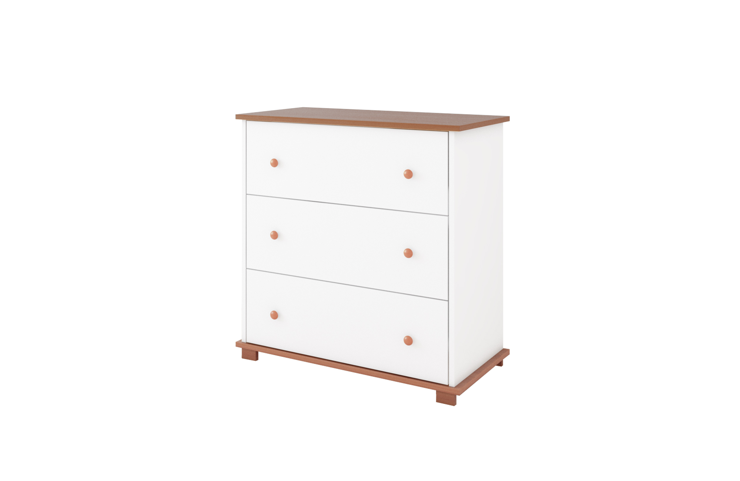 Διαθέτει τρία μεγάλα συρτάρια που επιτρέπουν την εύκολη αποθήκευση ρούχων, πάνων και άλλων αντικειμένων, διατηρώντας το δωμάτιο τακτοποιημένο. Η ενσωματωμένη αλλαξιέρα προσφέρει άνετο χώρο για την καθημερινή φροντίδα του μωρού.