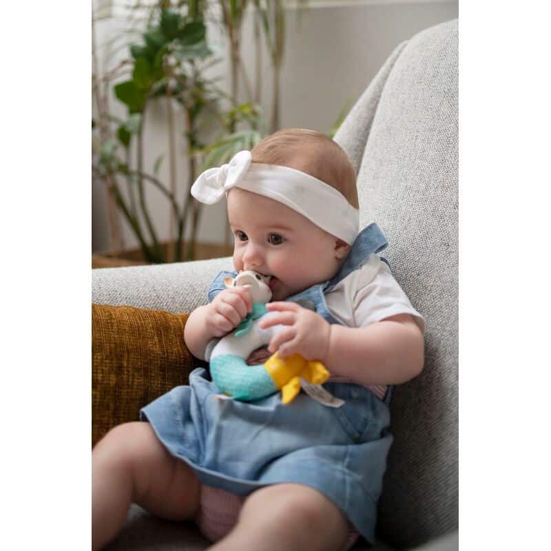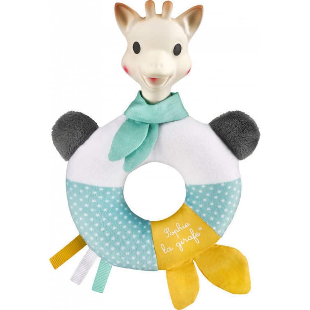 Ο τέλειος συνδυασμός μεταξύ του καουτσούκ και του υφάσματος βρίσκεται σε αυτή την χαρούμενη κουδουνίστρα της Σόφις της καμηλοπάρδαλης που θα ηρεμήσει και διασκεδάσει ταυτόχρονα το μωράκι σας!