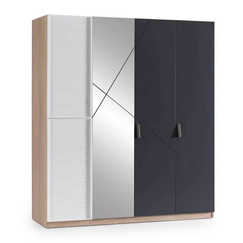 Ντουλάπα 3φυλλη NEW CITY Μελαμίνη Φυσικό & Γκρι & Λευκό 25321 132x62x205εκ. Kupa
