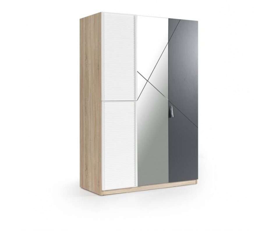 Ντουλάπα 3φυλλη NEW CITY Μελαμίνη Φυσικό & Γκρι & Λευκό 25321 132x62x205εκ. Kupa