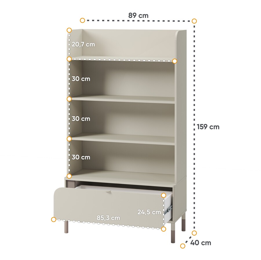- Εξωτερική Διάσταση Βιβλιοθήκης: Πλάτος 89cm x Βάθος 40cm x Ύψος 159cm