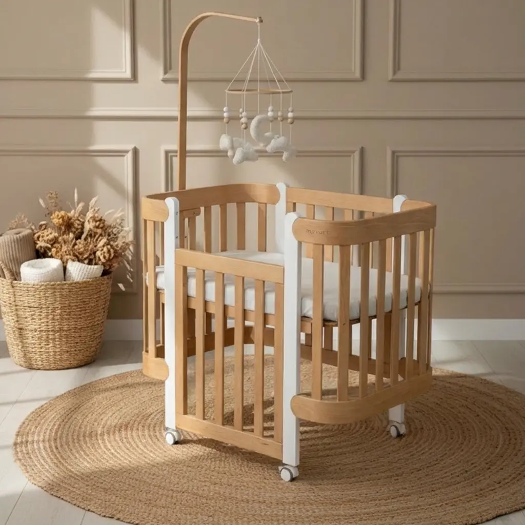- Βρεφική κούνια με πλευρική ανοιχτή πρόσβαση.