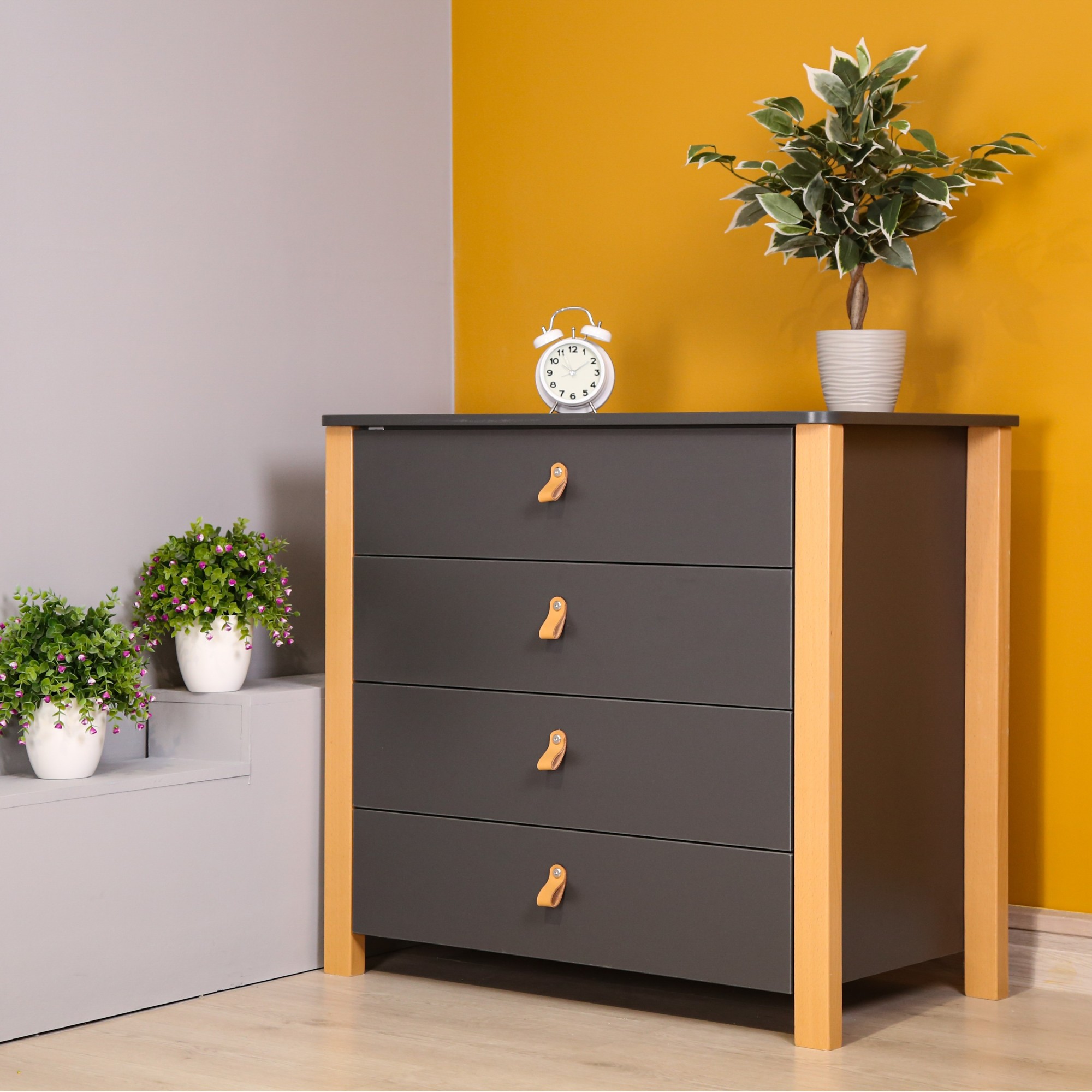 Βρεφική Συρταριέρα 90cm με Αποσπώμενη Αλλαξιέρα Anthracite & Natural Veres Monaco