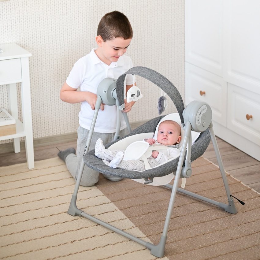 - Λειτουργία ανίχνευσης φωνής μωρού. Η κούνια αρχίζει να ταλαντεύεται στην ταχύτητα 1 και παίζει με τον πιο αδύναμο ήχο για 8 λεπτά.