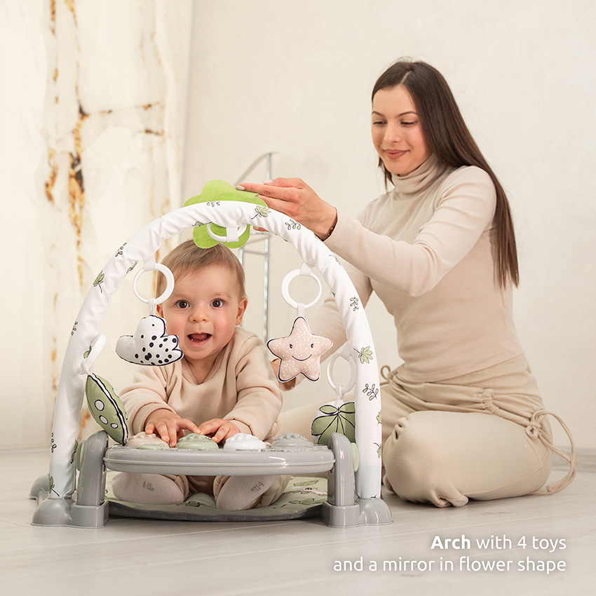 Μουσικοί εν δράσει! Το καινούργιο γυμναστήριο  My First Piano  της  Lorelli είναι ιδανικό, καθώς χρησιμοποιείται από τη γέννηση του μωρού σας και όσο μεγαλώνει. Τα παιχνίδια, τα οποία κρέμονται από την μπάρα του γυμναστηρίου ενθαρρύνουν το μωρό να τα πιάσει και να τα χτυπήσει. Η μπάρα προσαρμόζεται για παιχνίδι στα μπρούμυτα ή για να καθίσει το μωρό και με ευκολία να παίξει με το μουσικό πιανάκι!