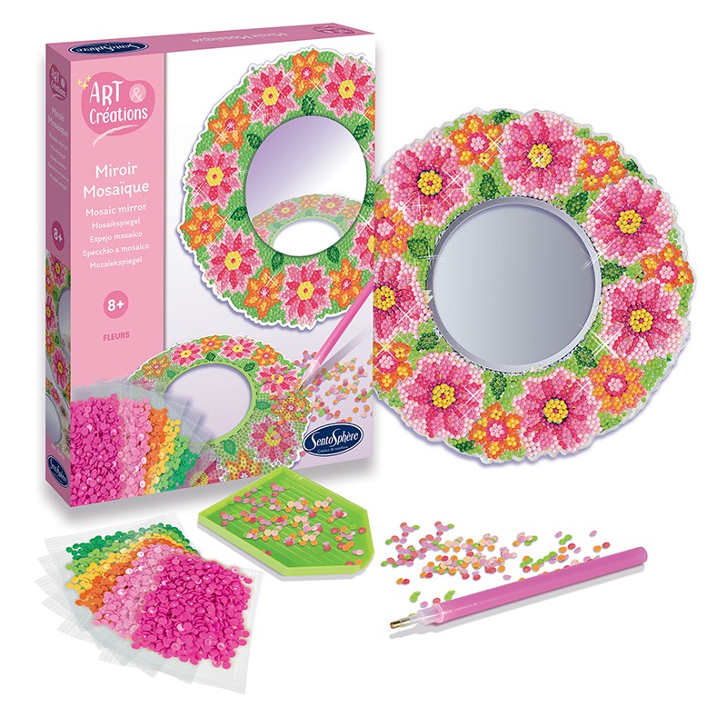 Το «Miroir Mosaïque Fleurs à Diamanter» είναι ένα υπέροχο δημιουργικό σετ που επιτρέπει στα παιδιά να διακοσμήσουν έναν καθρέφτη με λαμπερά διαμαντάκια σε μοτίβα λουλουδιών. Με την τεχνική diamond art, τα παιδιά τοποθετούν τα μικρά αυτοκόλλητα «διαμάντια» επάνω στο σχέδιο, δημιουργώντας ένα εντυπωσιακό μωσαϊκό που λάμπει στο φως.