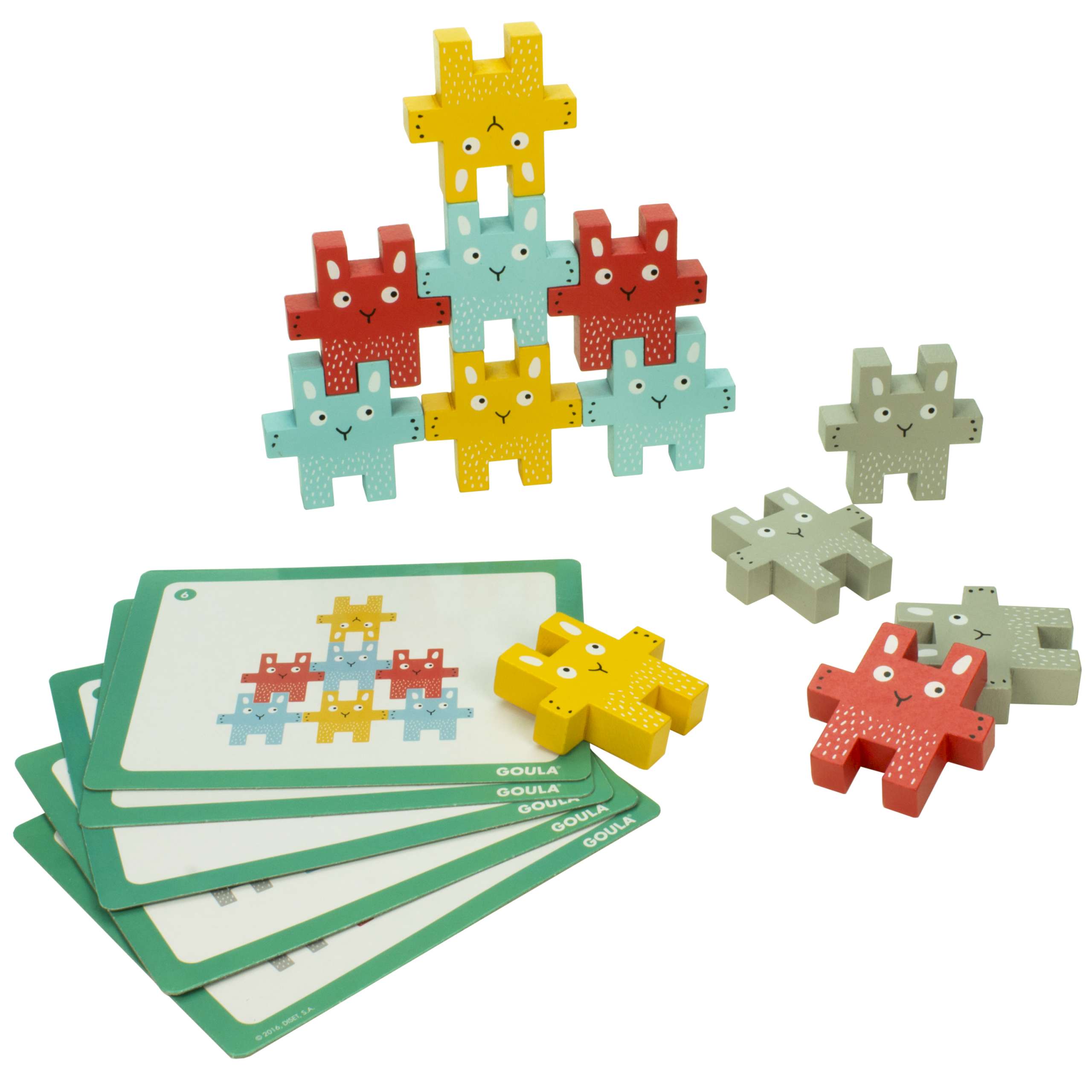 Το κουτί περιλαμβάνει 12 ξύλινα κουνελάκια και 5 κάρτες με προοδευτικά παραδείγματα και στις δύο πλευρές.