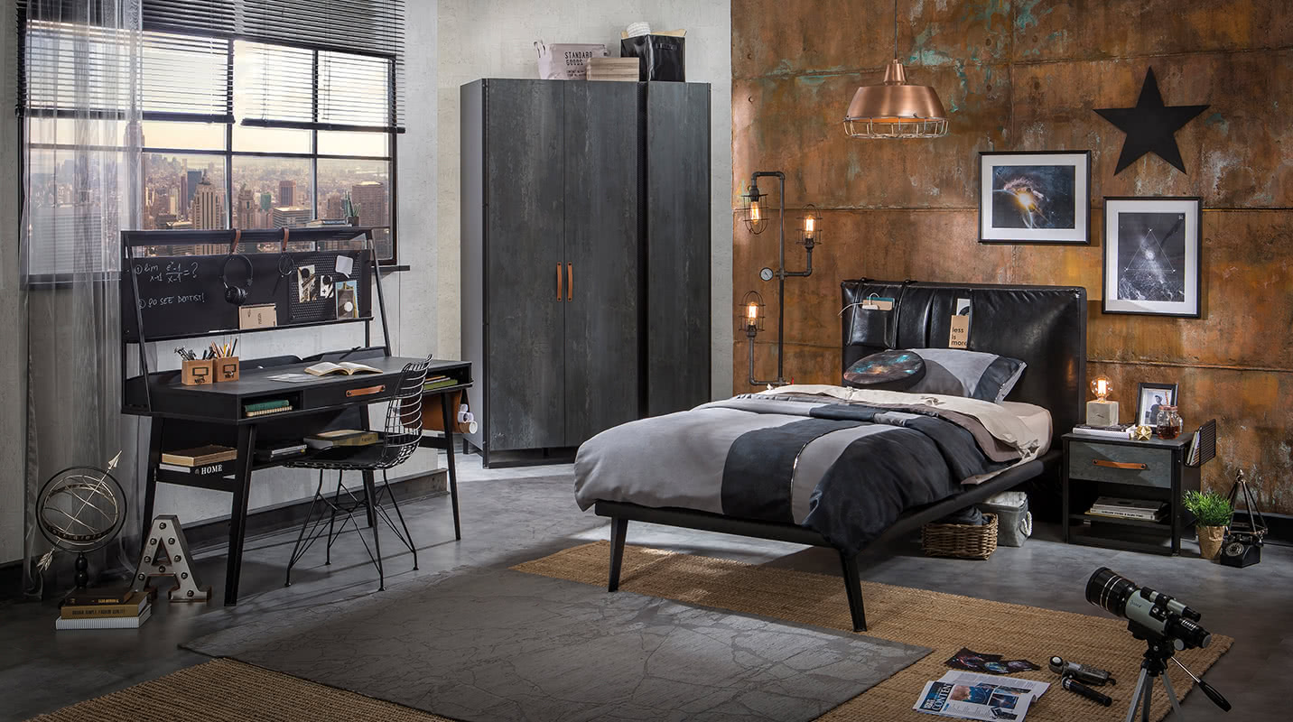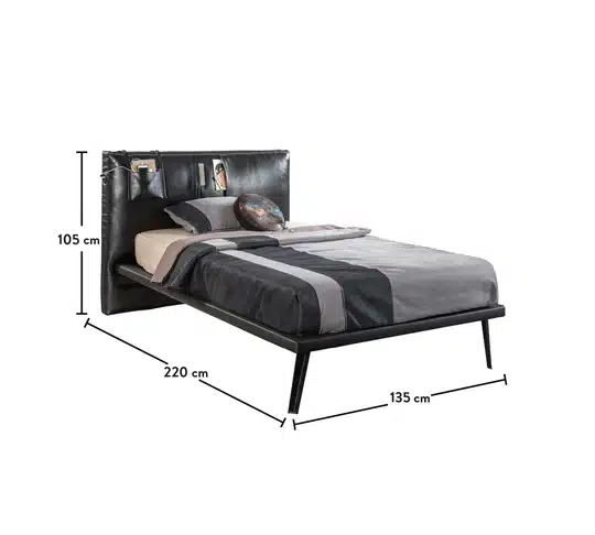 Το ημίδιπλο εφηβικό κρεβάτι της σειράς Dark Metal ξεχωρίζει για τον μοντέρνο σχεδιασμό και την άνεση που προσφέρει. Το μαύρο χρώμα και το δερμάτινο κεφαλάρι δημιουργούν ένα δυναμικό και σύγχρονο αποτέλεσμα που ταιριάζει ιδανικά σε ένα εφηβικό δωμάτιο.