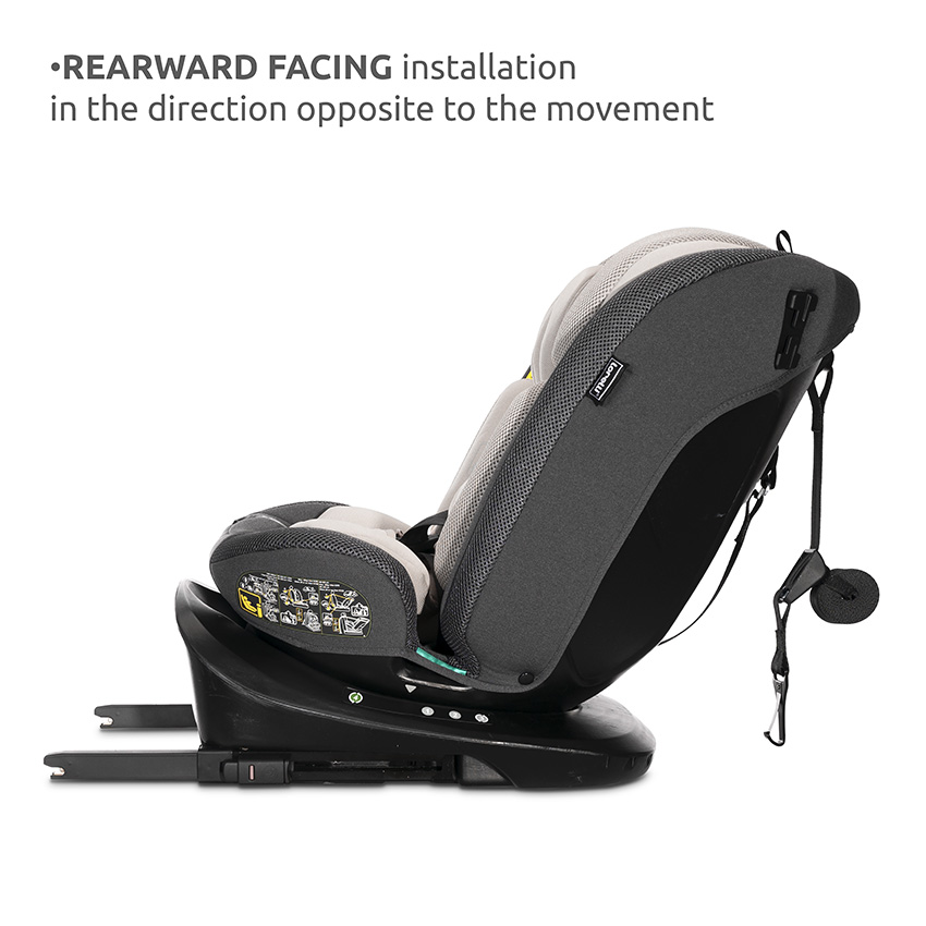 - Εύκολη συναρμολόγηση μέσω ISOFIX και άνω ζώνης για ύψος 40-105cm και με ζώνη ασφαλείας ενηλίκων με ή χωρίς ISOFIX στήριξη για ύψος 100-150cm