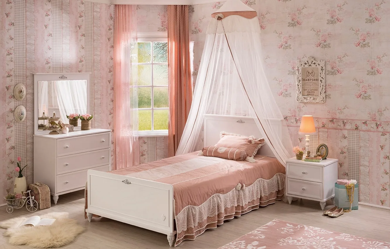 Σχεδιασμένος για να ταιριάζει απόλυτα με τη συρταριέρα της ίδιας σειράς, δημιουργεί ένα ολοκληρωμένο και αρμονικό σετ επίπλων. Η λευκή του απόχρωση και η ρομαντική αισθητική του τον καθιστούν ιδανικό για να προσθέσει κομψότητα και στυλ στο δωμάτιο της μικρής σας πριγκίπισσας.