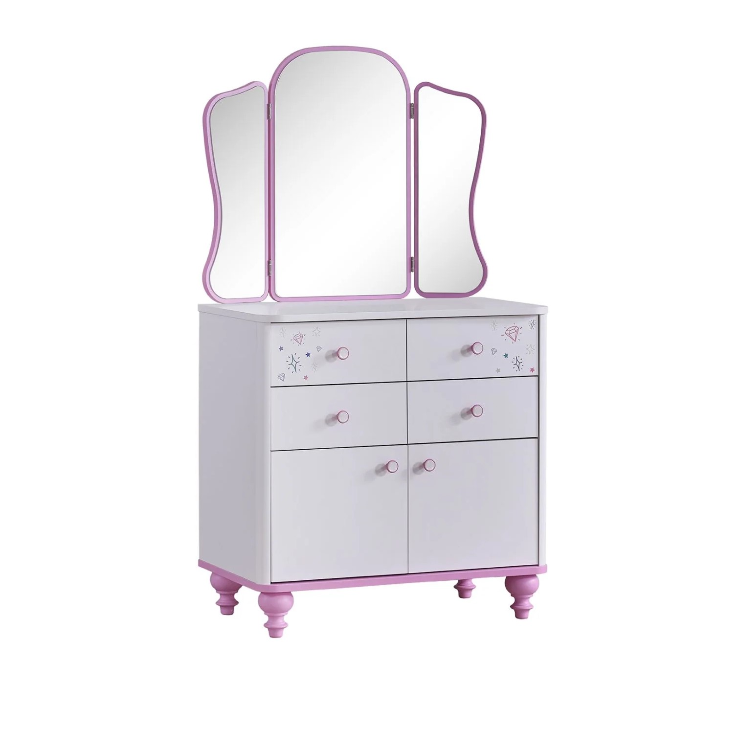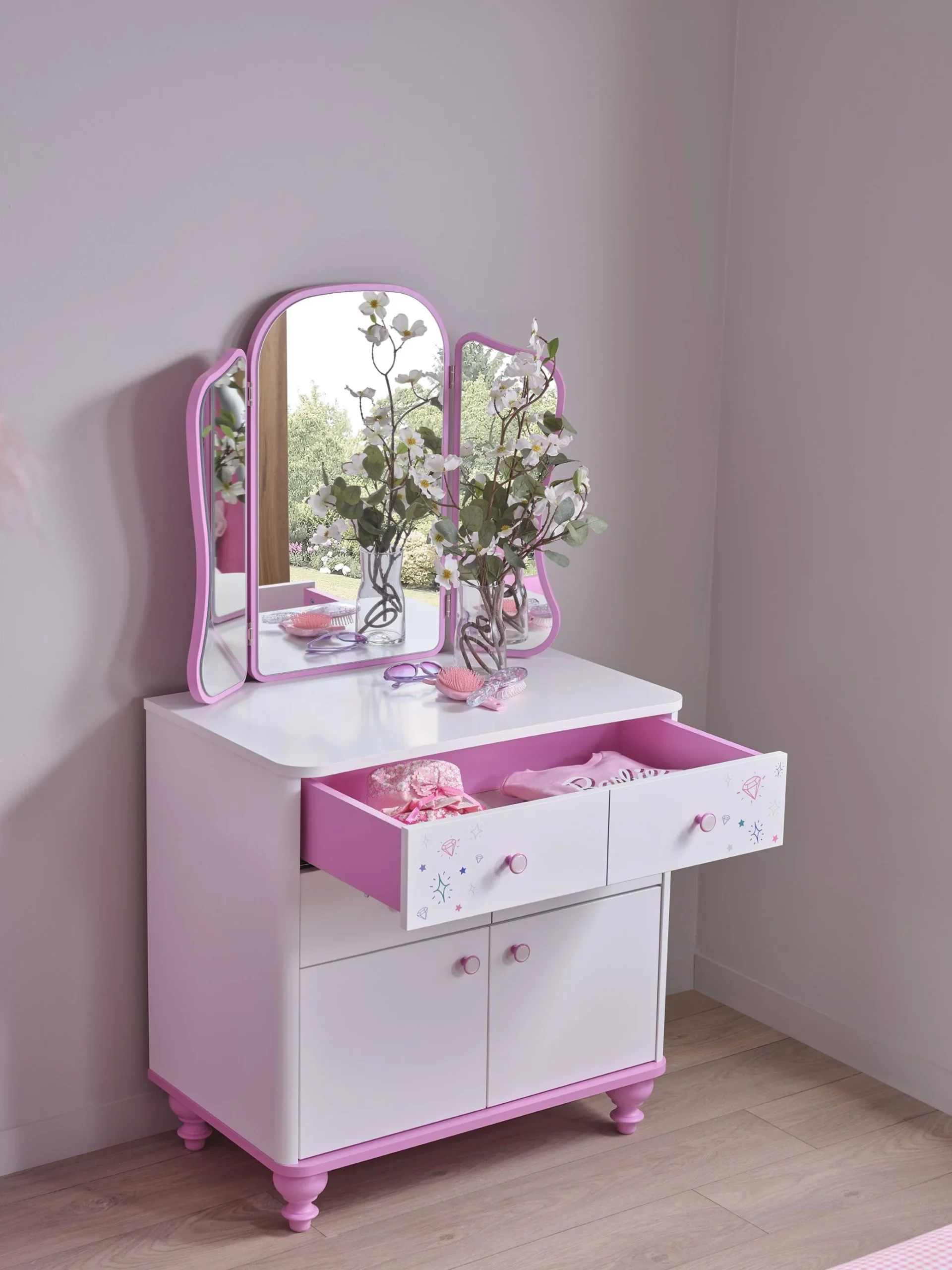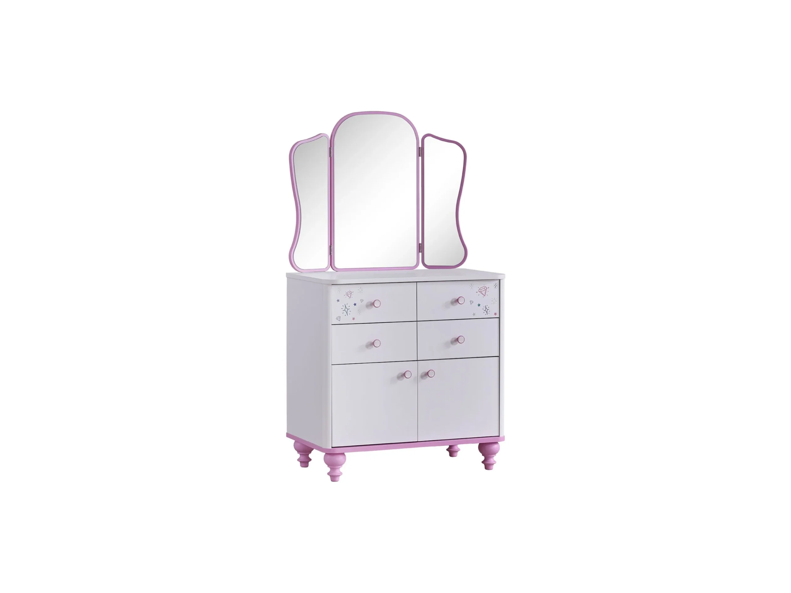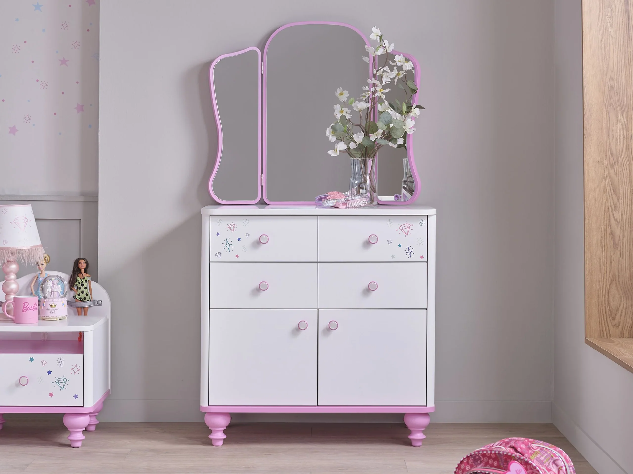 Ο καθρέφτης Little Princess σε ροζ χρώμα είναι η ιδανική προσθήκη για να ολοκληρώσετε το παραμυθένιο δωμάτιο της μικρής σας πριγκίπισσας. Σχεδιασμένος για να τοποθετηθεί πάνω από τη συρταριέρα, προσθέτει στυλ και λειτουργικότητα στον χώρο. Η απαλή ροζ απόχρωση και η κομψή σχεδίαση του καθρέφτη δημιουργούν μια γλυκιά και ζεστή ατμόσφαιρα.