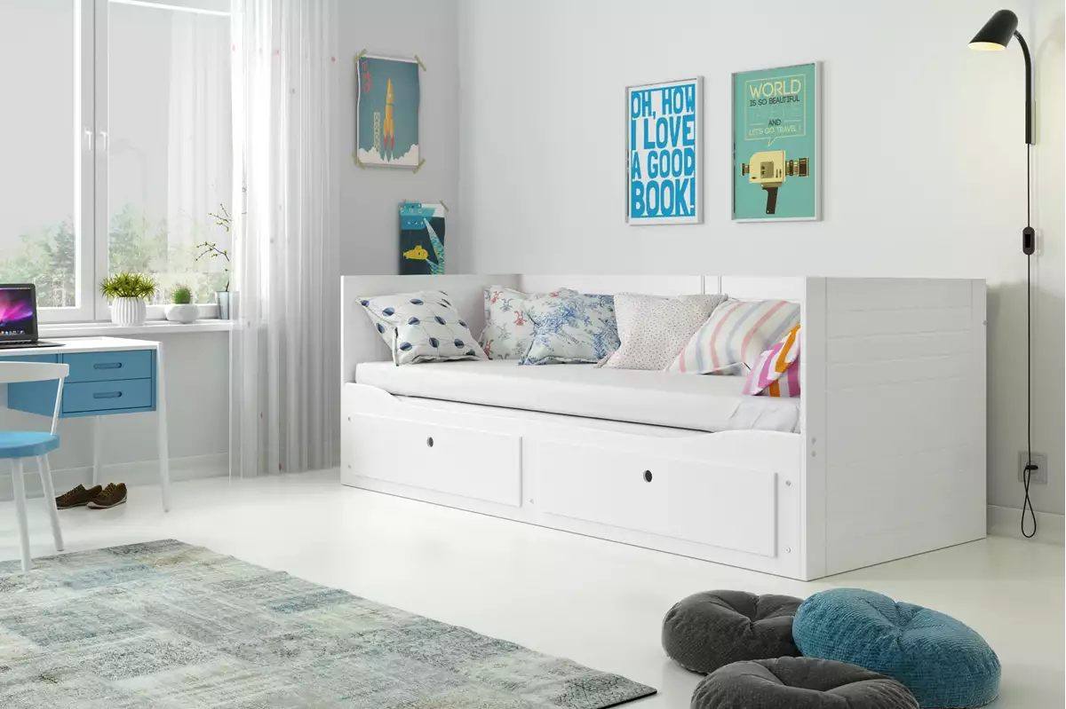 Ο Καναπές Κρεβάτι Hermes White προσφέρει ευελιξία και άνεση, καθώς προσαρμόζεται στις ανάγκες κάθε ηλικίας. Αρχικά λειτουργεί ως μονό κρεβάτι 80x200cm, ενώ στη συνέχεια μετατρέπεται εύκολα σε μεγάλο κρεβάτι 160x200cm, εξασφαλίζοντας άνετο ύπνο και περισσότερο χώρο.