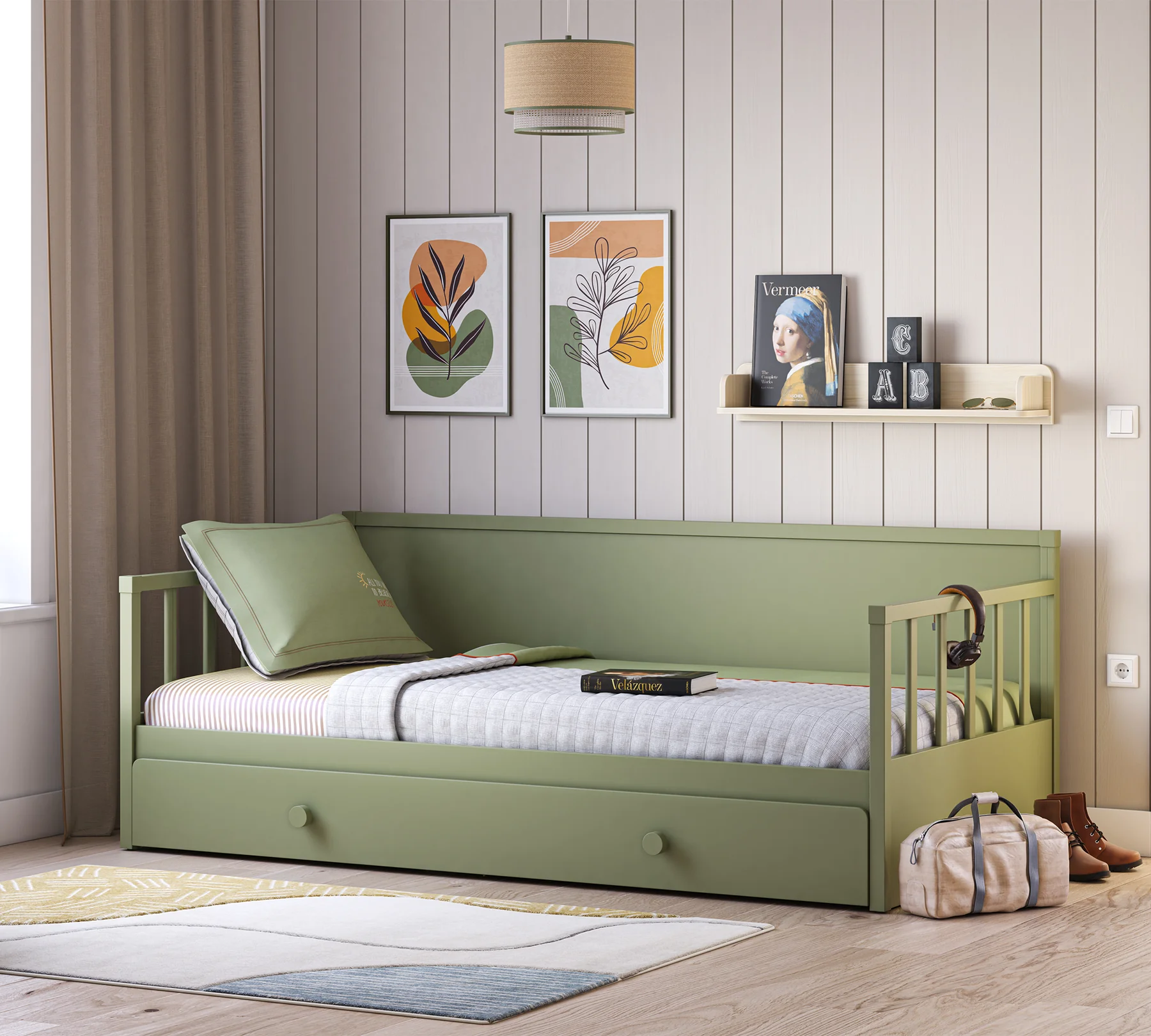 Προσφέροντας έναν διασκεδαστικό χώρο διαβίωσης με τη φυσική του εμφάνιση, ο καναπές κρεβάτι μπορεί να δεχθεί στρώμα 100×200 cm, προσφέροντας έναν άνετο ύπνο που θα υποστηρίξει την ανάπτυξη των παιδιών.
