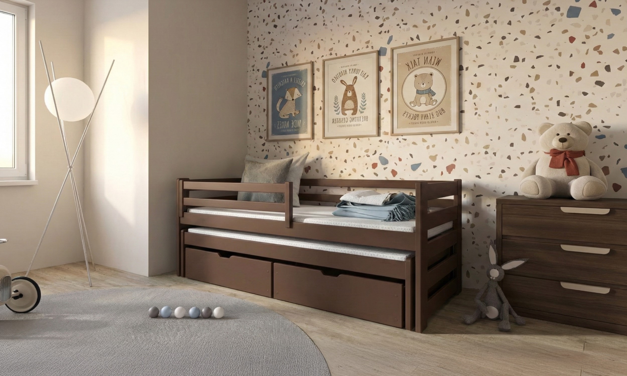 Τέλος, η κατασκευή από μασίφ ξύλο πεύκου και οι οικολογικές βαφές νερού εξασφαλίζουν ανθεκτικότητα, ασφάλεια και υγιεινό περιβάλλον ύπνου. Παράλληλα, η διαθεσιμότητα σε πολλές διαστάσεις και μεγάλη ποικιλία χρωμάτων επιτρέπει την απόλυτη προσαρμογή του κρεβατιού σε κάθε παιδικό δωμάτιο.