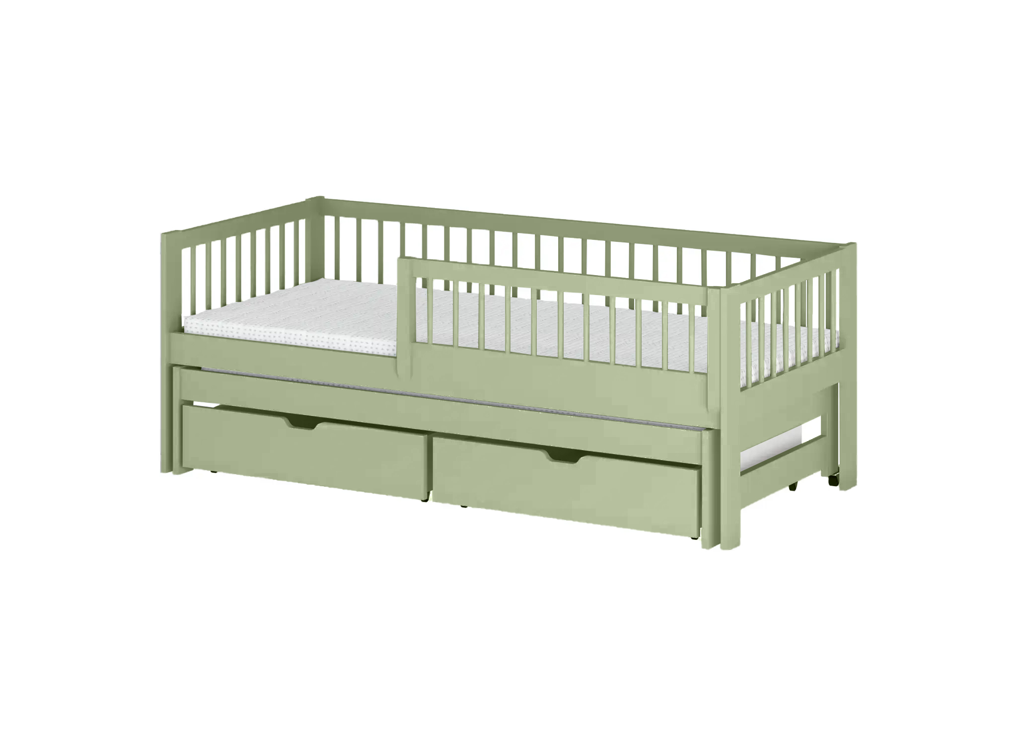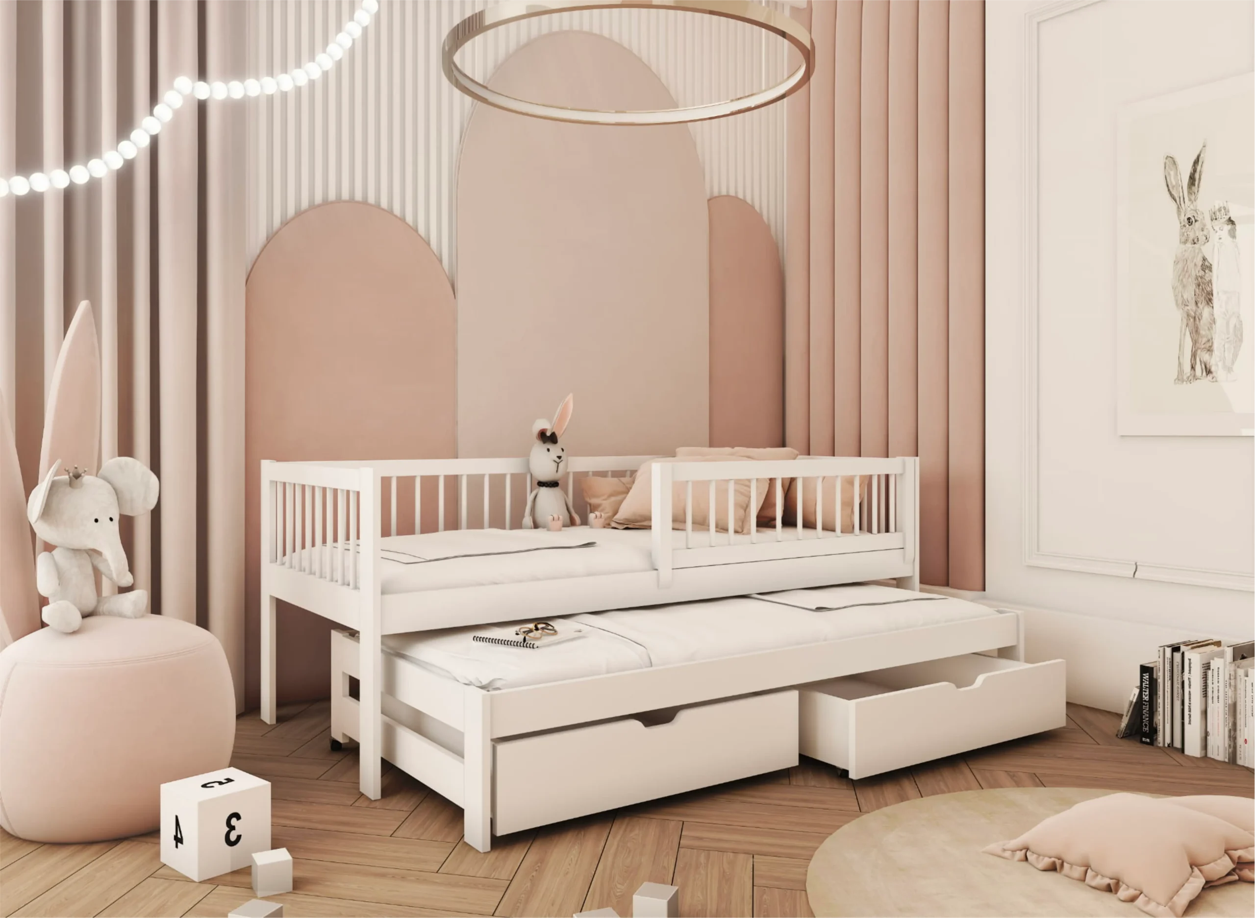 Ταυτόχρονα, ο καναπές Softi προσφέρει πρακτικότητα στην καθημερινότητα, καθώς το δεύτερο κρεβάτι σύρεται εύκολα προς τα έξω χάρη στα ενσωματωμένα ροδάκια. Έτσι, δημιουργείτε άμεσα επιπλέον χώρο ύπνου για αδέρφια ή φιλοξενούμενους.