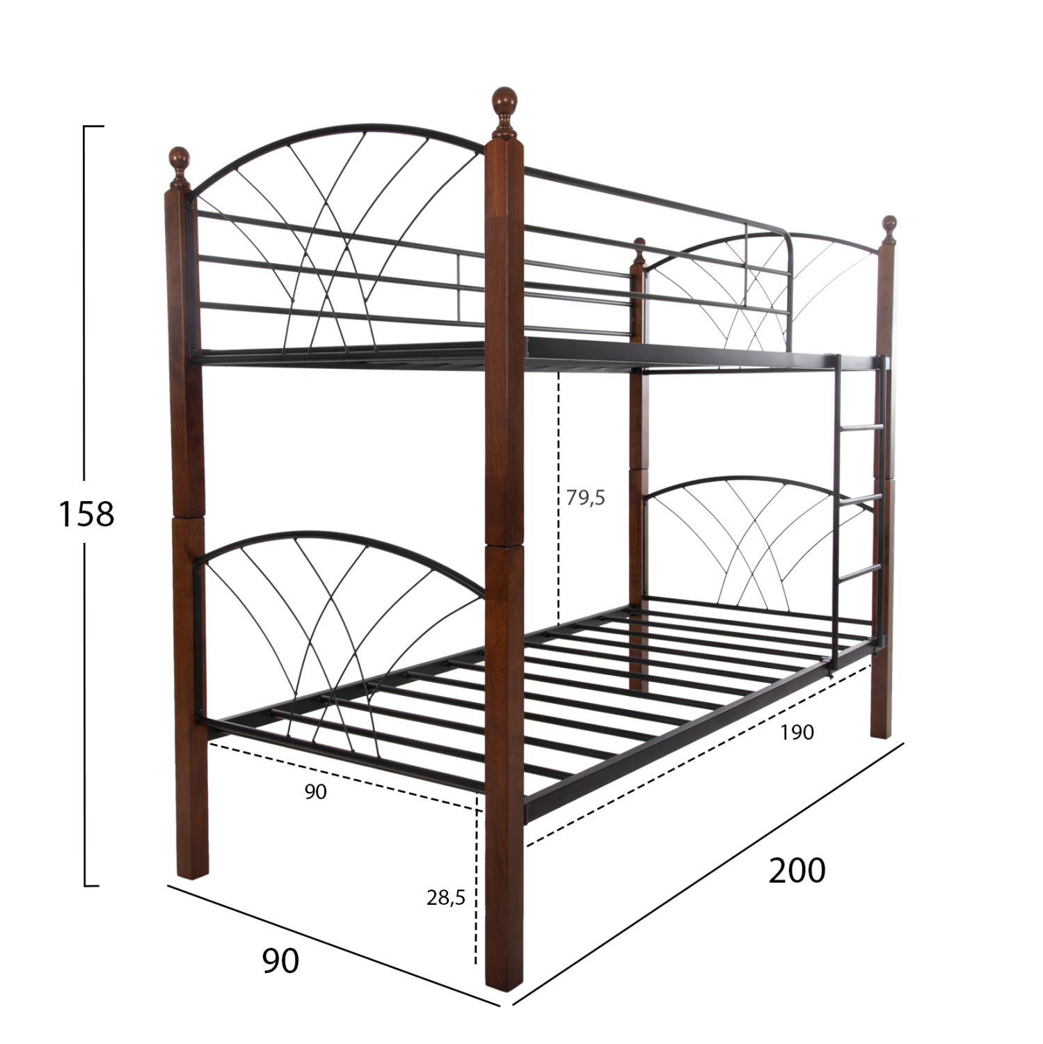 Κουκέτα Μεταλλική Storey Καρυδί & Μαύρο 90×190cm (Δώρο 10% Έκπτωση στα Στρώματα)