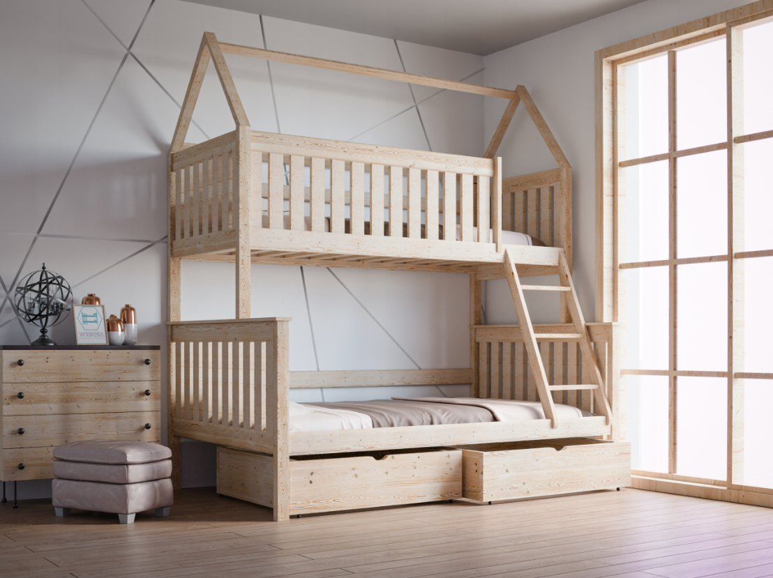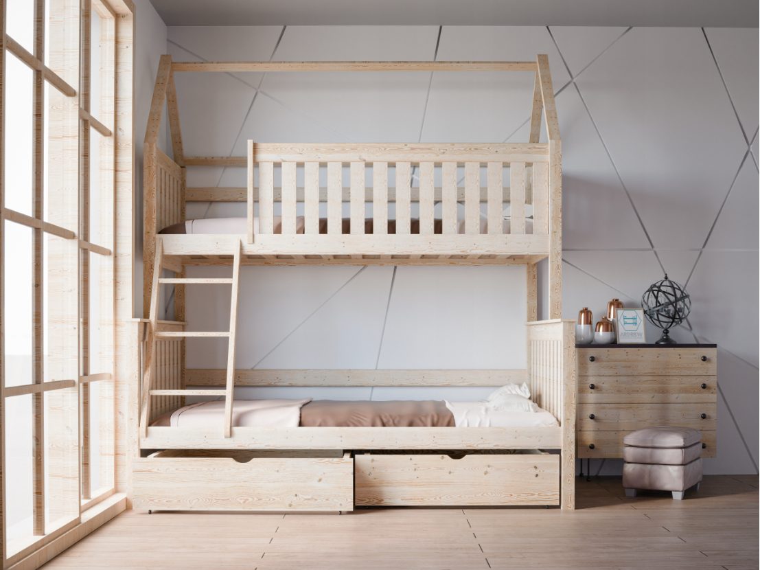 Κουκέτα με Οροφή Alvin Domek Μονή – Ημίδιπλη με Συρτάρια από μασίφ ξύλο Natural 90/120×200cm (Δώρο 10% Έκπτωση στα Στρώματα)