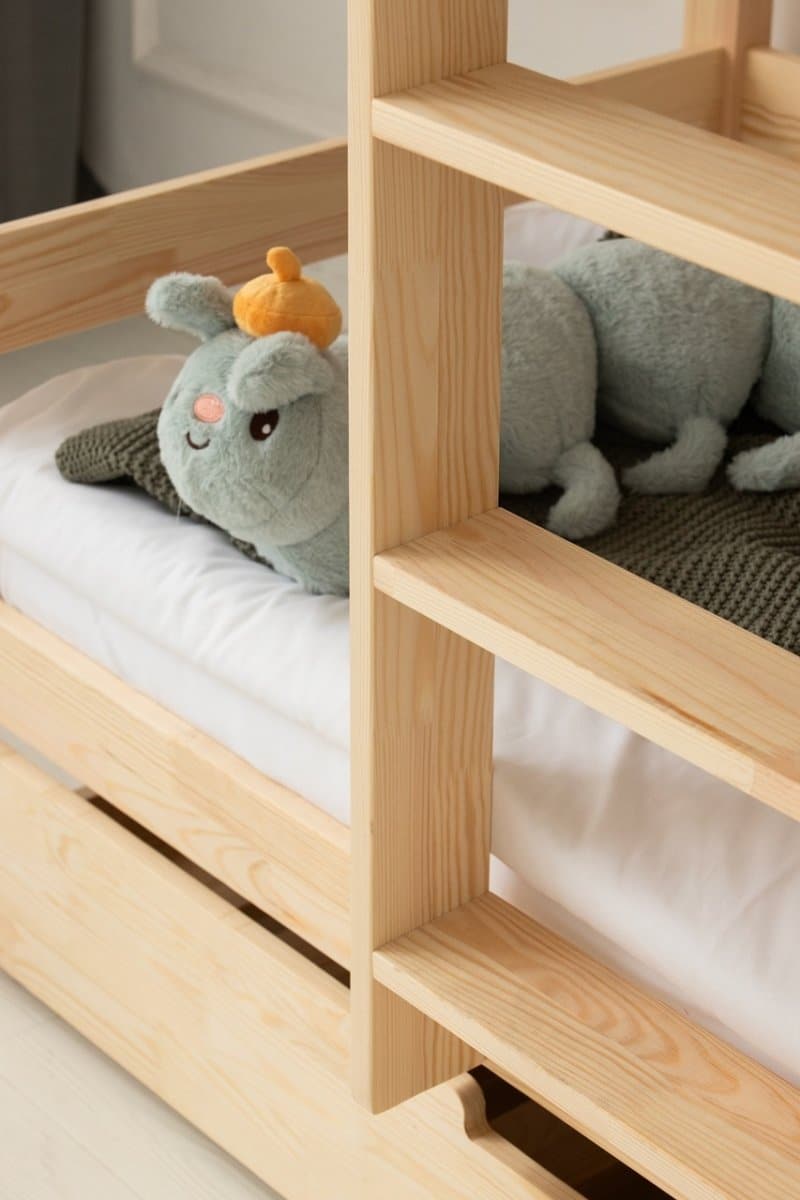 Η κουκέτα MILA κατασκευασμένη από μασίφ ξύλο σε φυσικό χρώμα, αποτελεί την ιδανική λύση για δύο παιδιά στο ίδιο δωμάτιο και θα προσφέρει την απόλυτη ασφάλεια που αναζητάτε για τα παιδιά σας.