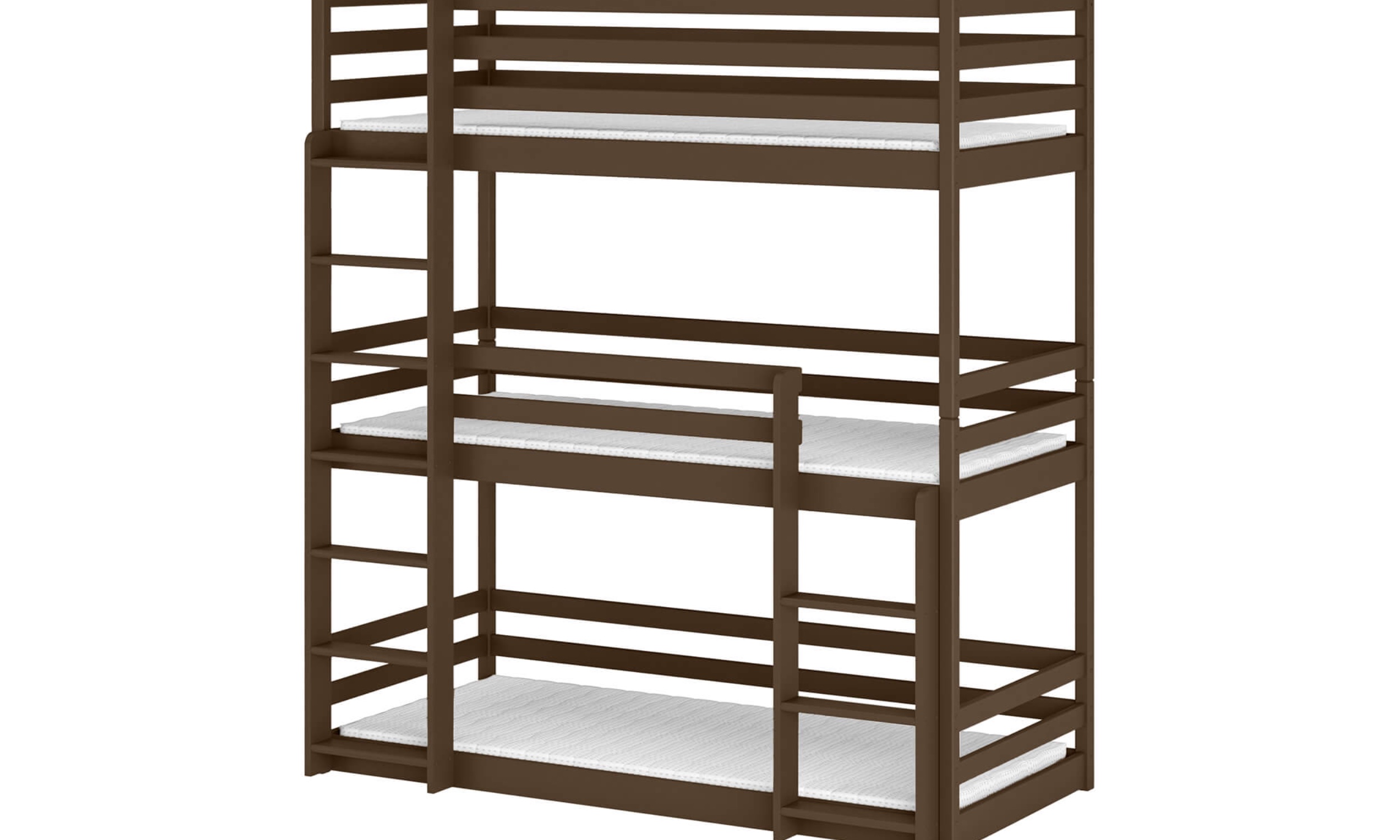 Κουκέτα Παιδική Montessori Τριώροφη Ted με κάγκελα 38cm από μασίφ ξύλο Dark Chocolate 90×200cm (Δώρο 10% Έκπτωση στα Στρώματα)