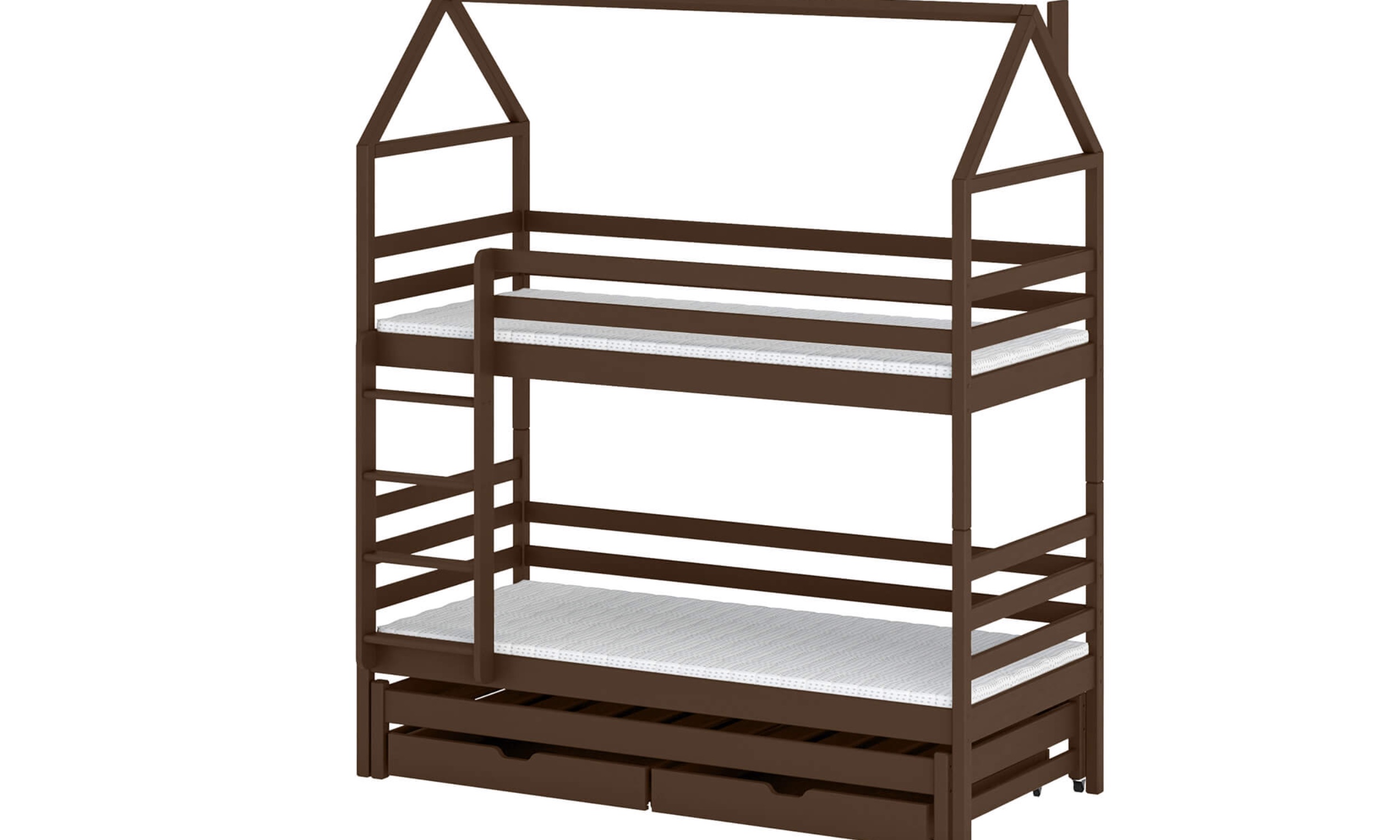 Κουκέτα Σπιτάκι Dalia με Συρόμενο & Συρτάρια από μασίφ ξύλο Dark Chocolate 90×200cm (Δώρο 10% Έκπτωση στα Στρώματα)